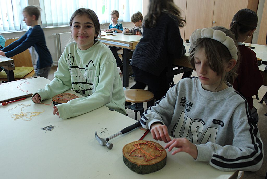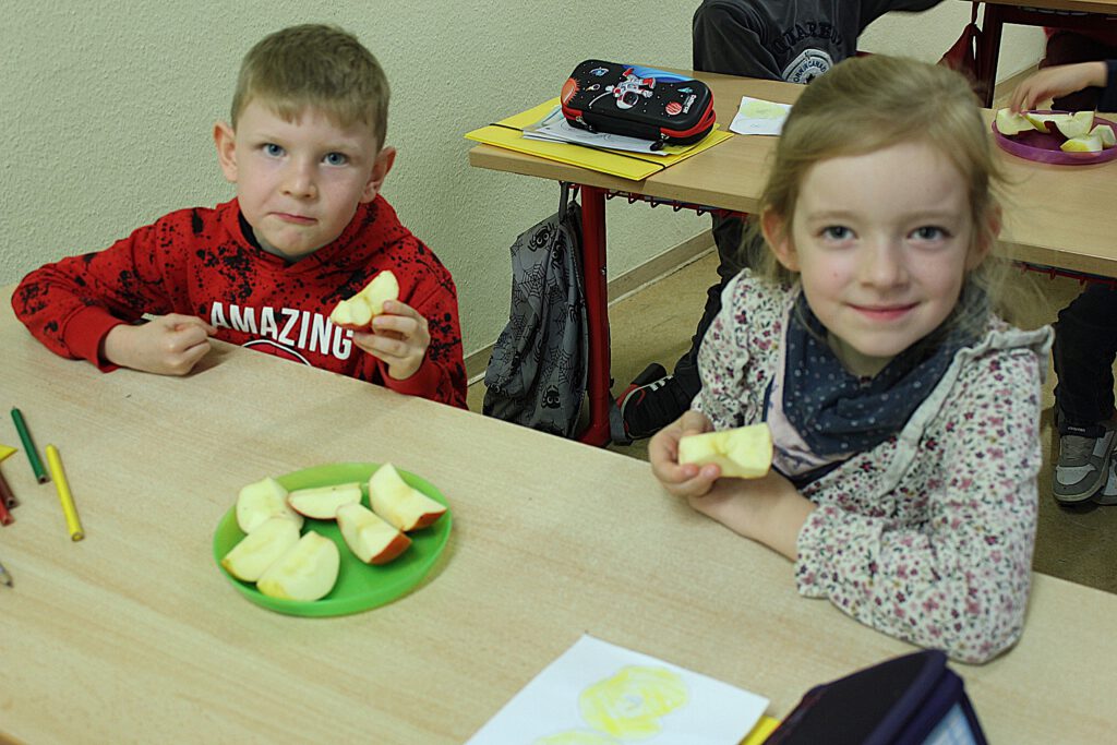 Zum Start in die Herbstferien war bei uns mal wieder richtig was los. In allen Klassen gab es tolle Projekte. Überall wurde gemalt, gebastelt und geknobelt. Es wurden Apfelsorten getestet, bunte Blätter gesammelt und Bilder geklebt. Es wurde mit Holz und Nägeln gearbeitet, Kartoffelsuppe gekocht und vieles mehr. Die Aktivitäten waren so bunt wie der Herbst selbst.